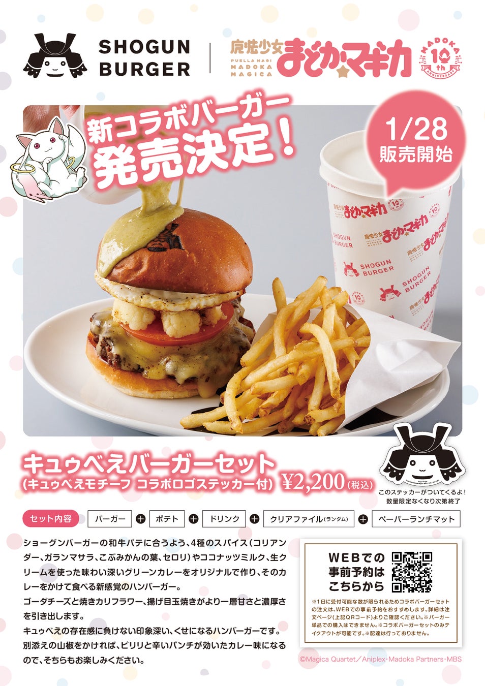 『SHOGUN BURGER×魔法少女まどか☆マギカ』に新商品《キュゥべえバーガー》1月28日より発売決定。
