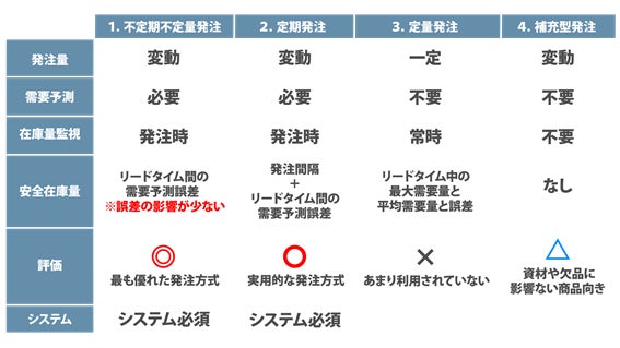 商品ごとに最適な発注方式を設定可能です。在庫を最適化する唯一の手段が発注方法を最適化することです。