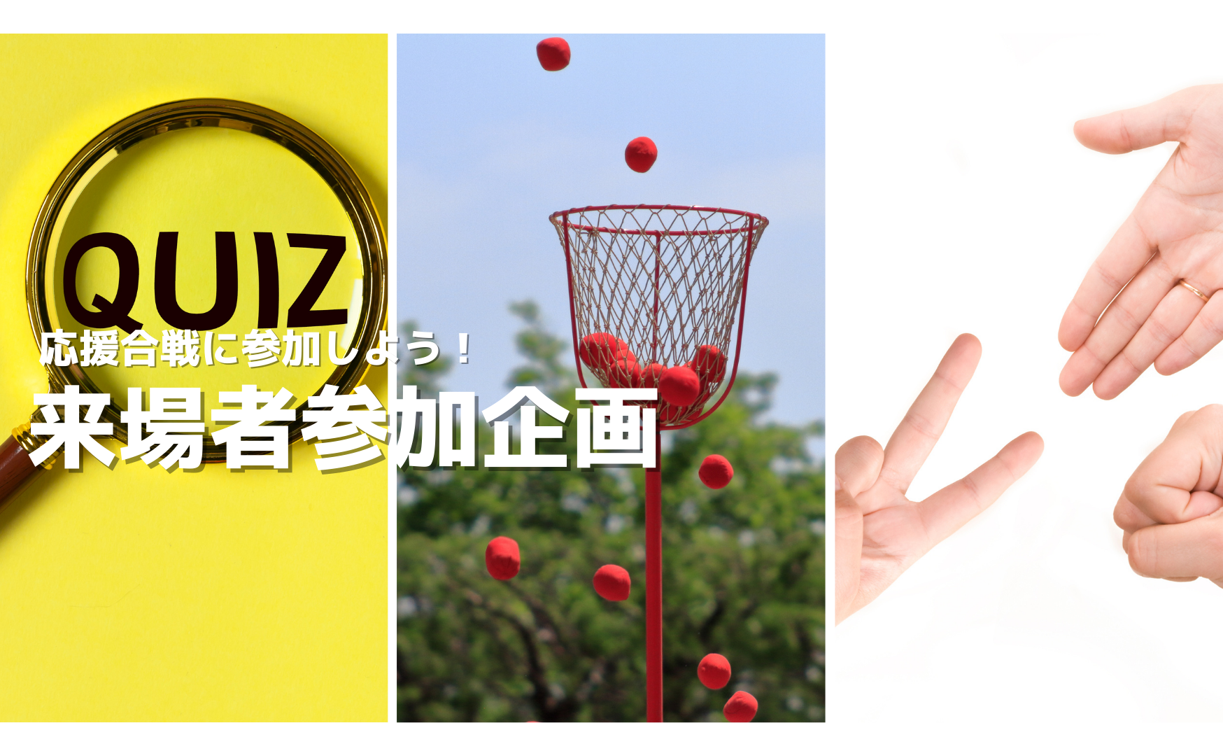 当日は見て楽しむ、食べて楽しむほかに、お子様から大人まで来場者の皆様に参加してもらい楽しめる企画を用意しています。3エリア対抗「玉入れ」では汗を流して応援合戦の参加者の一人としてイベントをお楽しみください。また、1,000人の参加者を募る「千葉じゃんけん選手権大会」では名誉ある千葉じゃんけん王が決まるだけでなく、上位者には豪華賞品もご用意しているため、是非ご参加ください!