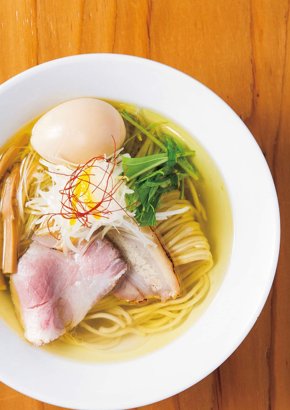 ぐり虎代表作の鶏塩ラーメンは、見た目はあっさり、味は鶏の旨みたっぷり上品な味わいだ。