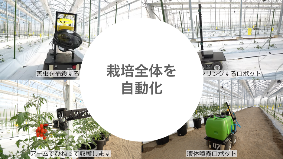 収穫ロボットや液体噴霧ロボットや防虫ロボットなど複数のロボットのプロトタイプを開発しました。作物生産では2023年4月には有機JAS認証を取得し、科学的なアプローチによるミニトマト栽培を成功させ、味や糖度の高さを評価され初回からオーガニックスーパーや百貨店やホテルに出荷する実績を収めました。