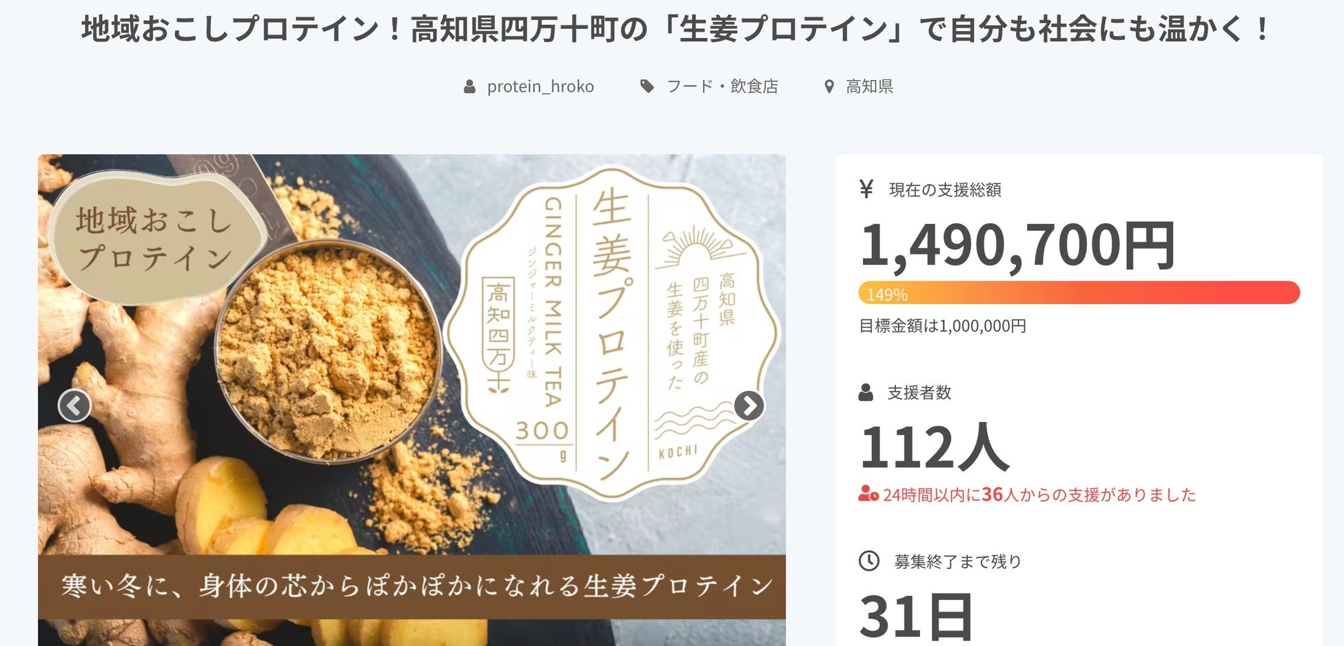【初日でクラファン100%達成!】「地域おこしプロテイン」で日本中を元気に!