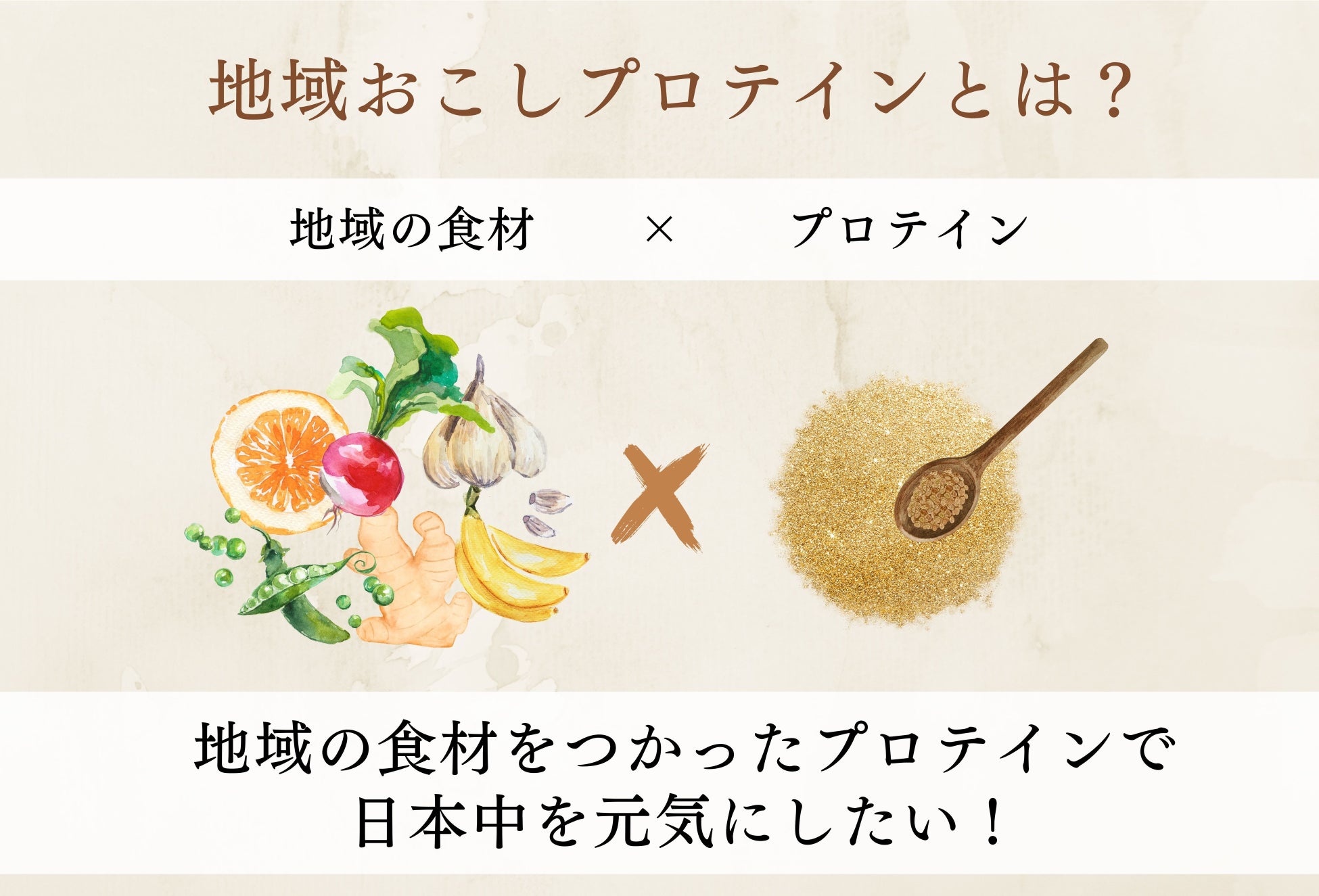「地域おこしプロテイン」は、地域応援や社会貢献ができ、元気になってもらえるプロテインを目指しています。