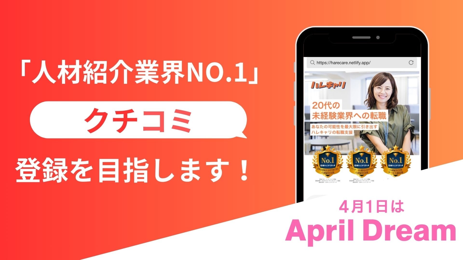 株式会社HAREはクチコミ登録数 “人材業界NO.1” を目指します。