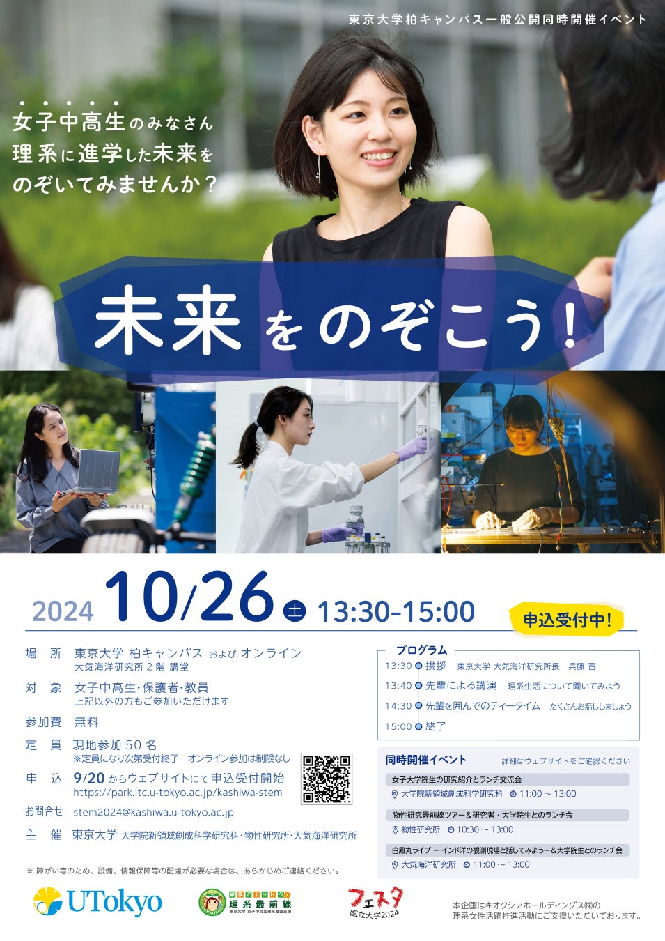 女子中高生の理系進路選択を応援!東京大学柏キャンパス無料イベント「未来をのぞこう!」2024年10月26日(土)開催