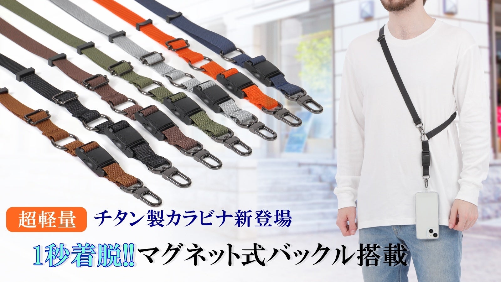 一瞬で脱着!ドイツ・Fidlock社製バックルを使用!新しい6通りの使い方が可能な第2弾スマホストラップが7月17日(水)からMakuakeで先行発売開始。
