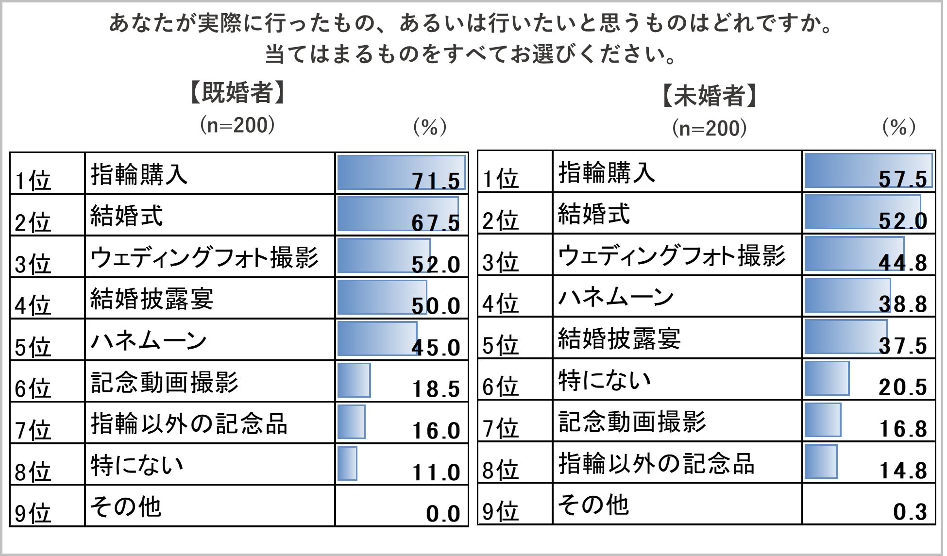 結婚式やウェディングフォトより、指輪購入を優先する傾向も明らかに。