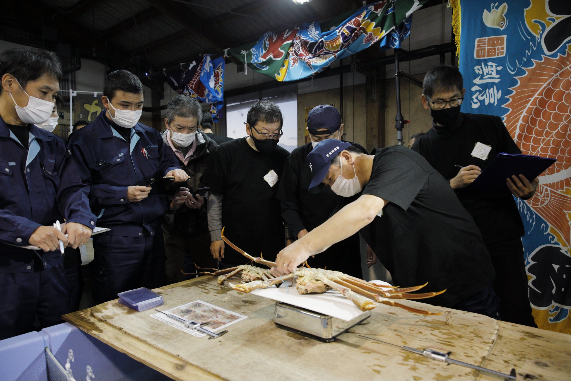 「輝姫」の初セリでは、1尾ずつ測定や記録が次々に行われ「輝姫」として認定された計20尾(石川県漁協かなざわ総合市場にて7尾、加賀支所にて13尾)が順にセリにかけられました。最高額は石川県漁協加賀支所の1尾30万円で、雌のズワイガニとしては国内史上最高額(※)になりました。