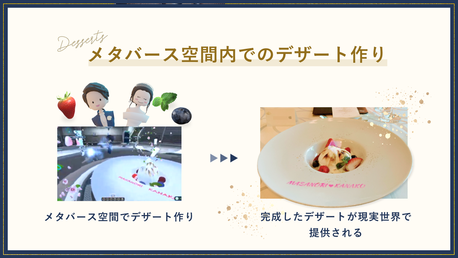 今回のウェディングでは、メタバース空間で行う没入型トレーニングをデザート作りに応用しています。