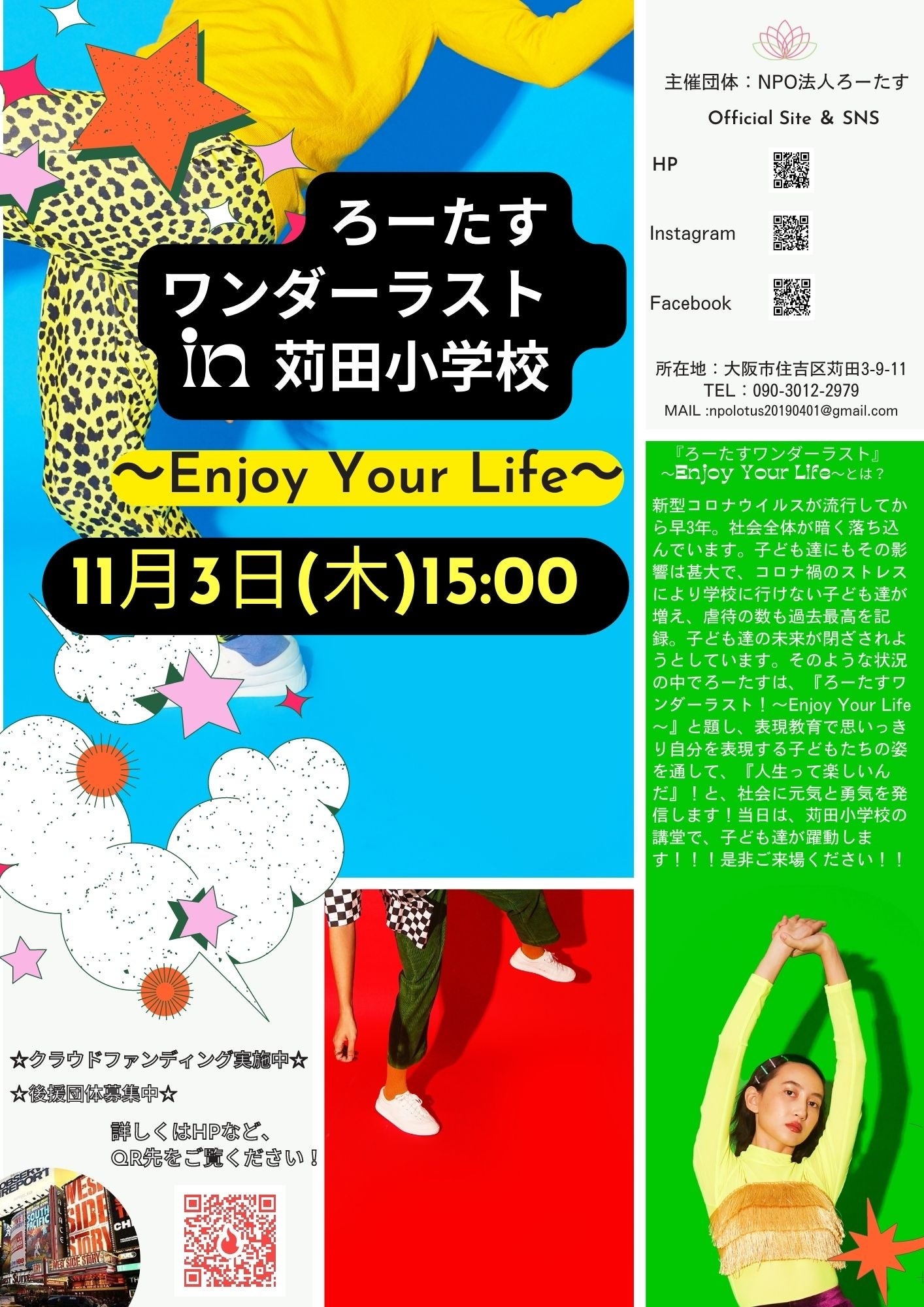 そこで、今年11月3日の文化の日に『ろーたすワンダーラスト!~Enjoy Your Life~』という表現教育プログラムを開催します。