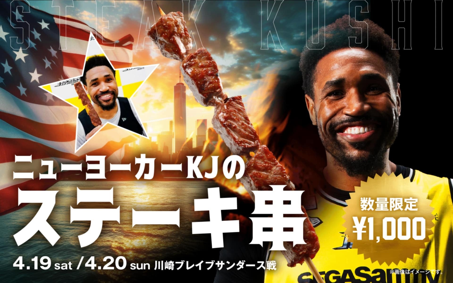 4月19日(土)・20日(日)に販売したケビン・ジョーンズ選手がプロデュースした「ニューヨーカーKJのステーキ串」