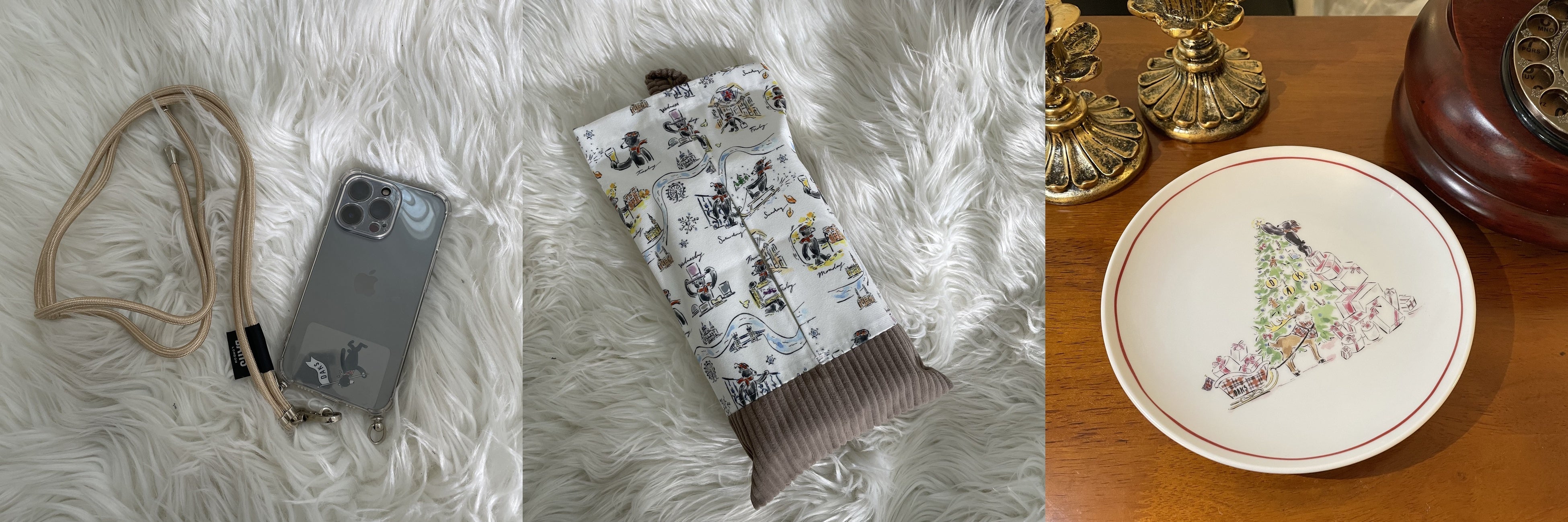 DAKS商品をお買い上げのお客様にコラボノベルティ(スマホストラップ、ティッシュカバー、お皿)をプレゼント致します。