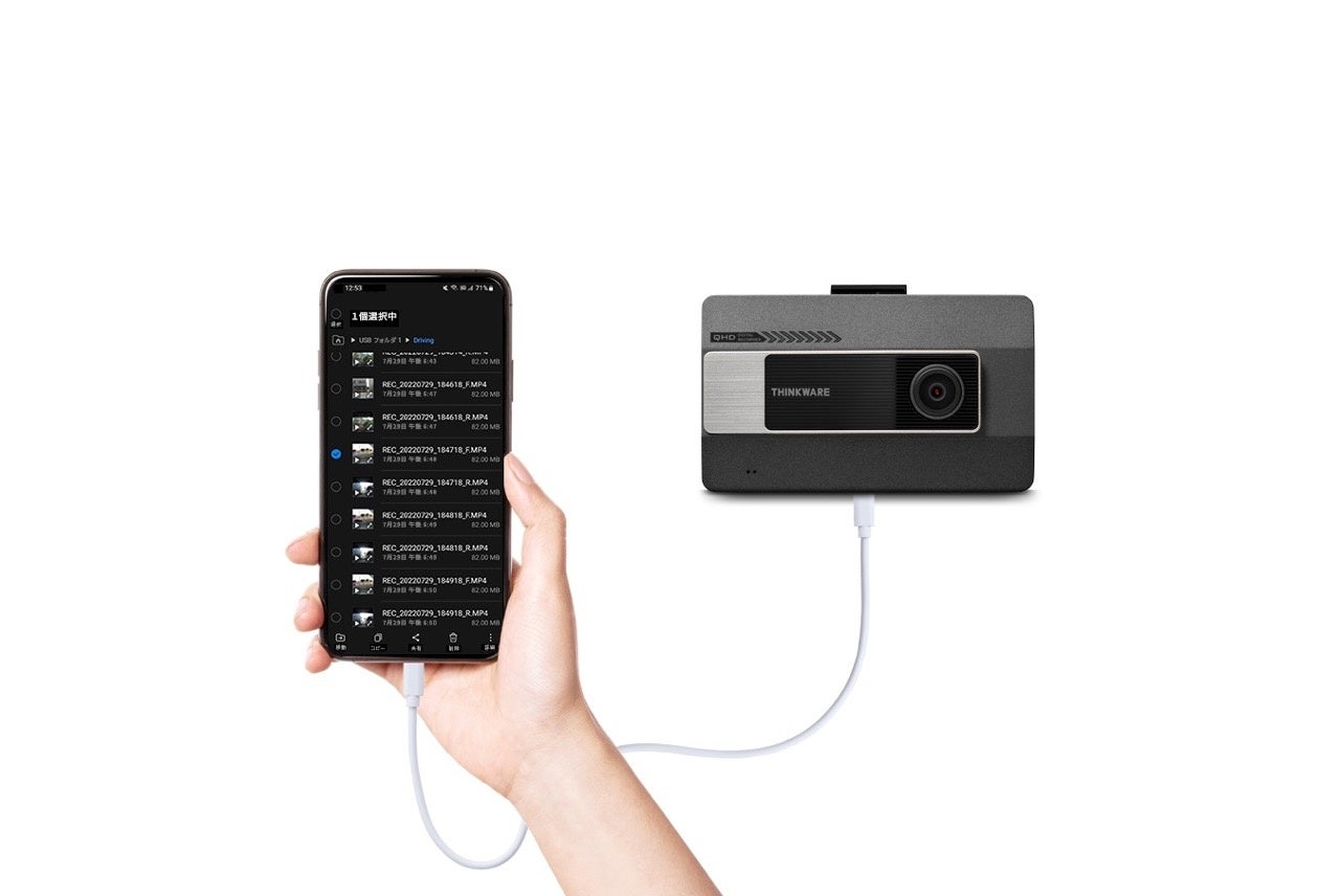 USB type-Cケーブルがあれば、スマートフォンとドライブレコーダーを直接接続させて、すぐに映像を確認・保存することが可能です。