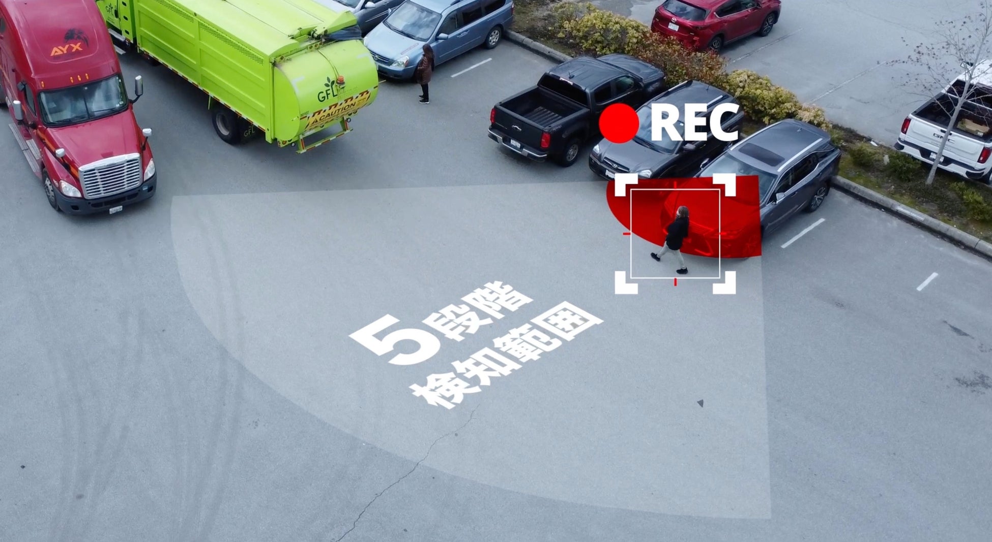 また、1mから5mの5段階で検知距離範囲を設定することができ、周囲の環境に合わせることで、駐車録画の誤作動を減らすことが可能です。