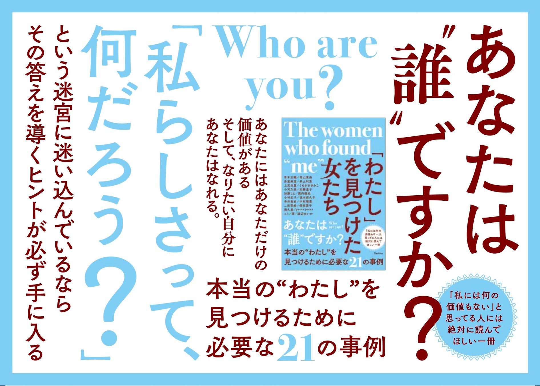 21人の女性たちのストーリー・生き方・働き方・考え方を知ることで「自分には自分だけの価値がある」という意識を掴むことができる書籍なので