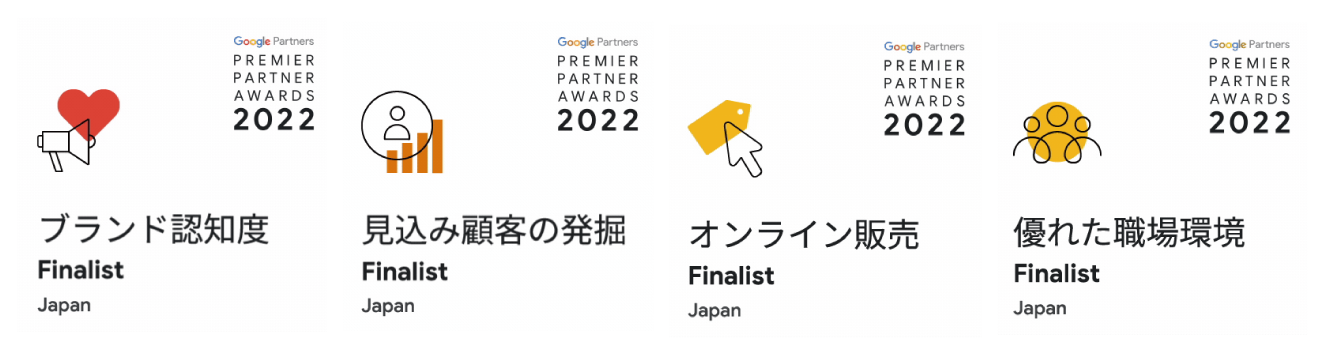 Premier Partner Awards2022ファイナリストの発表:https://premierpartnerawards.withgoogle.com/intl/ja/finalists-2022/
