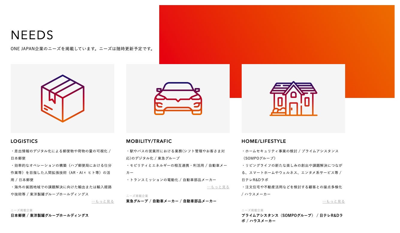 専用HPにONE JAPAN企業のニーズを掲載しています。ニーズは随時更新予定です。