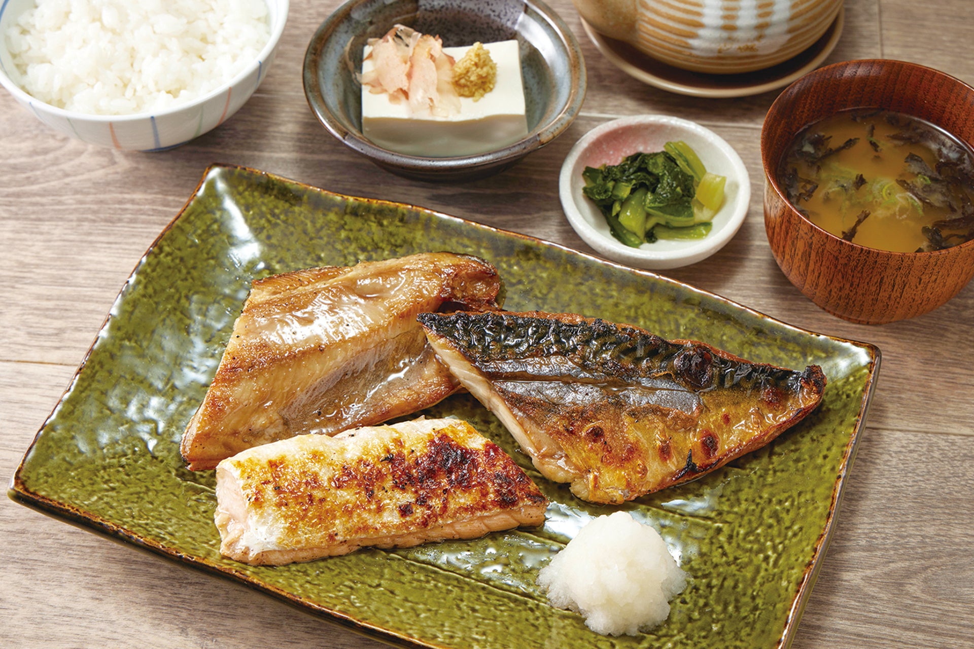 “焼き魚は炭火で焼くから旨い”というこだわりのもと、当社セントラルキッチンで製造された干物を炭火で丁寧に焼き上げます。さらに、店舗で皮ごとすりおろしたみずみずしい大根おろしを添えることで、焼き魚との相性を最大限に引き出します。素材の味を活かしたシンプルながらこだわり抜いた一皿で、お客様にこれまでにない満足感を提供します。