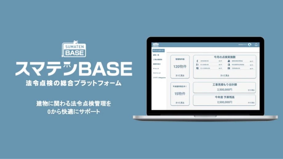 「法令点検未実施のない世界を創る」ビジョンを掲げ、建物設備の法令点検プラットフォーム事業を運営している。建物法令点検のクラウド管理サービス「スマテンBASE」と消防設備点検アプリ「スマテンUP」を開発・運用しており、現在(2021年11月)まで約4500棟の建物に向けて法令点検の実施・管理を全国的に提供している。