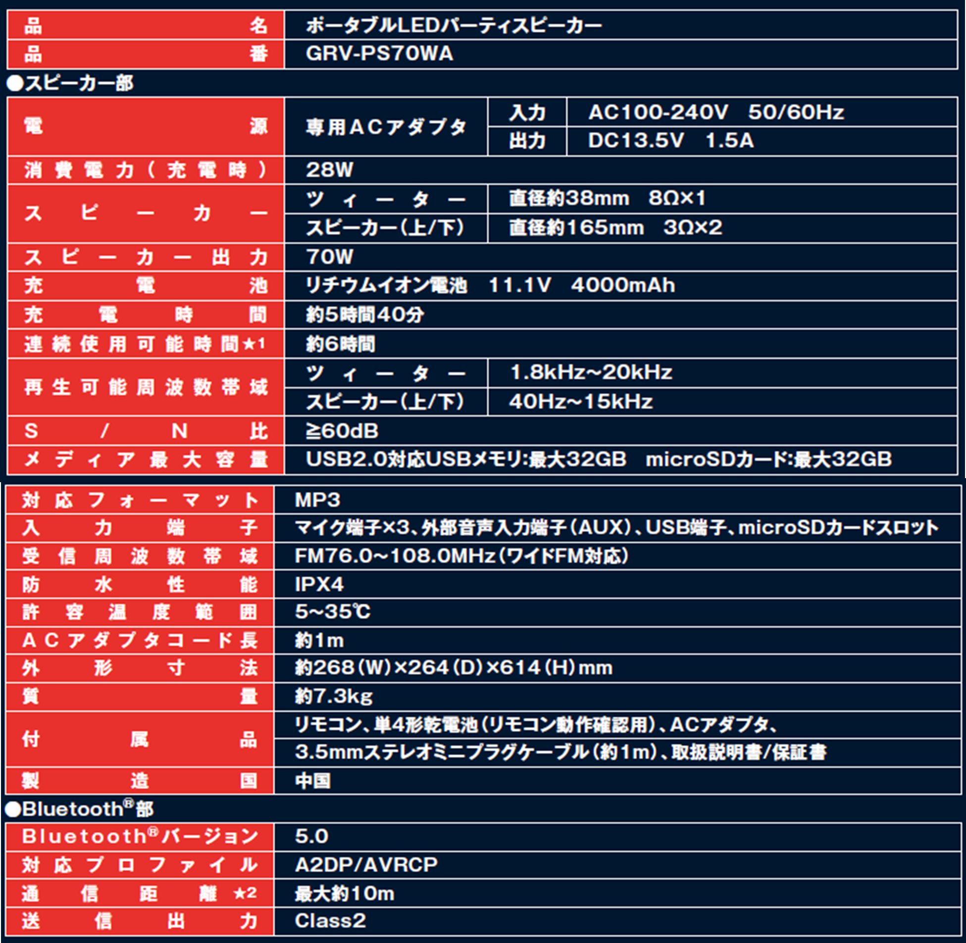 ■リングLEDキャリングスピーカー GRV-BS04LB(画像右下)