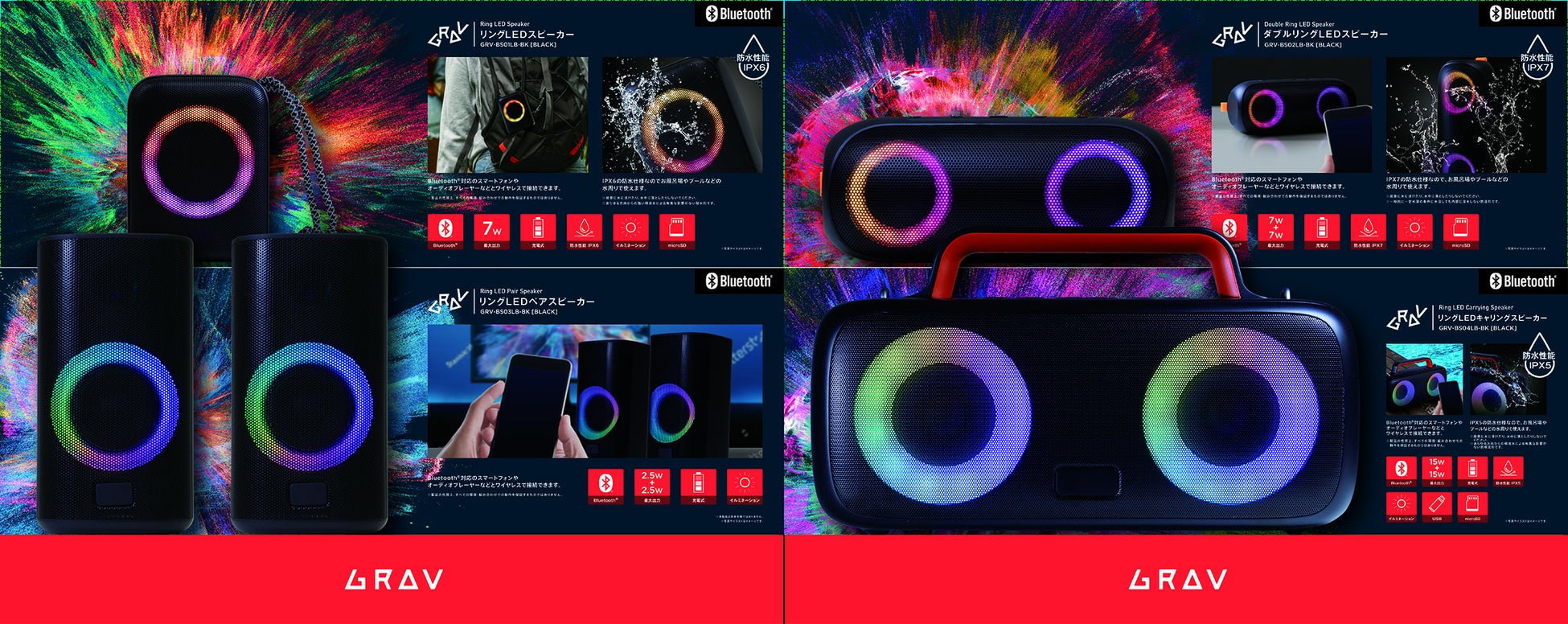 株式会社アズマ(所在地:埼玉県さいたま市)は、オーディオブランド“GRAV”(グラブ)を新たに立ち上げ、4機種のBluetoothスピーカーを発売しました。全国のドン・キホーテで7月下旬より発売予定です。