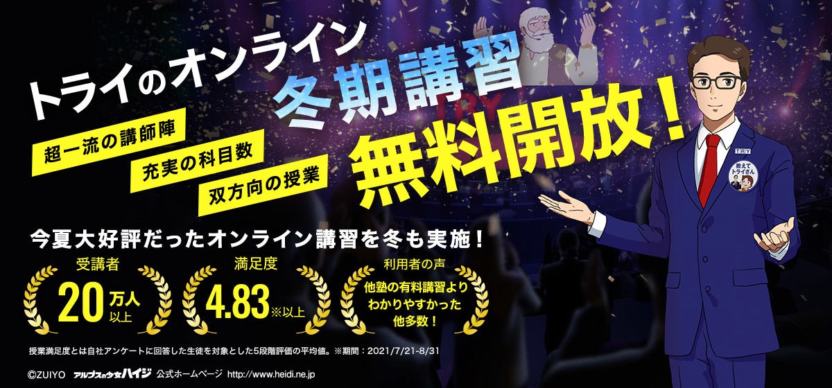 「学びの灯を止めない」という想いのもと、コロナ禍でも新たな学習サービスを続け、教育の地域・所得格差の壁を取り払うことに本気で取り組むトライは、2021年夏に実施した「オンラインLIVE夏期講習」に続き、2021年冬にハイクオリティな “完全オンライン×完全無料”にて提供する「オンラインLIVE冬期講習」を実施。