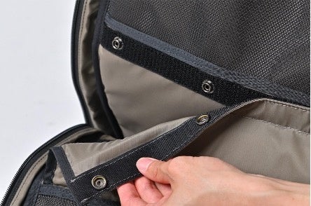 リュック内の仕切りは面ファスナーとスナップで着脱でき、大きな荷物を入れることも可能です。