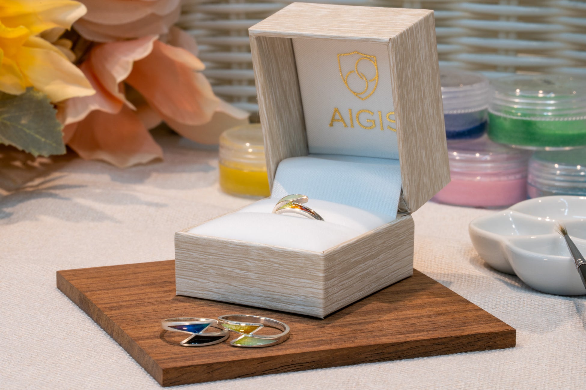 AIGISのエマーユリングは、ガラス質の釉薬を指輪に焼き込むことで、自分の好きな色の指輪を作ることが出来る人気の手作り体験サービスです。