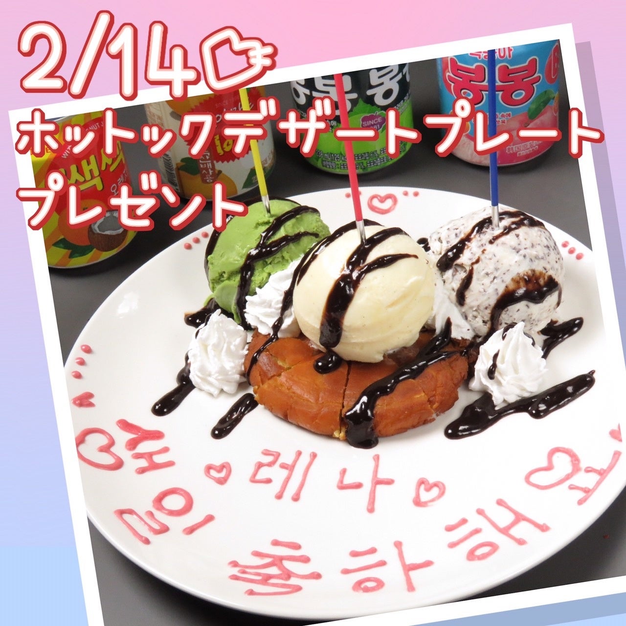 『小さな韓国あぷろ大阪心斎橋店』(HP: https://apuro-osaka.com/ )で2月14日限定でバレンタインキャンペーンを行います。Instagramのストーリーズで当店公式アカウントにメンションして投稿いただくと、デザートプレートをもれなくプレゼントいたします。この機会にぜひご来店ください。