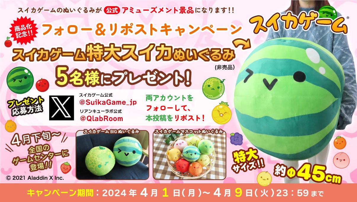 ・応募方法:スイカゲーム公式とリアンキューラボのXアカウントをフォローし、対象ポストをリポスト