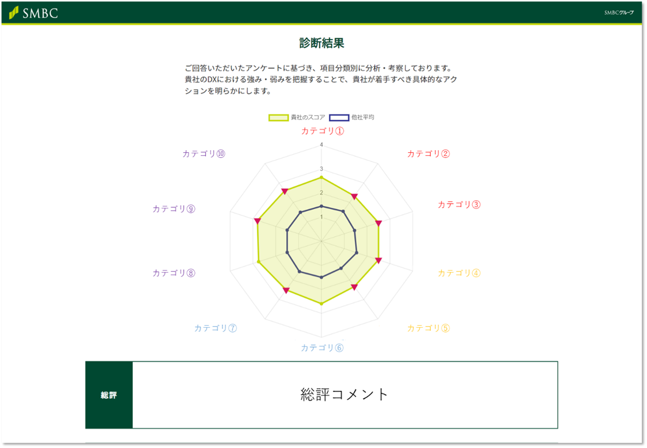 <診断結果/項目別スコアリング(提供先のお取引先さま用画面)>
