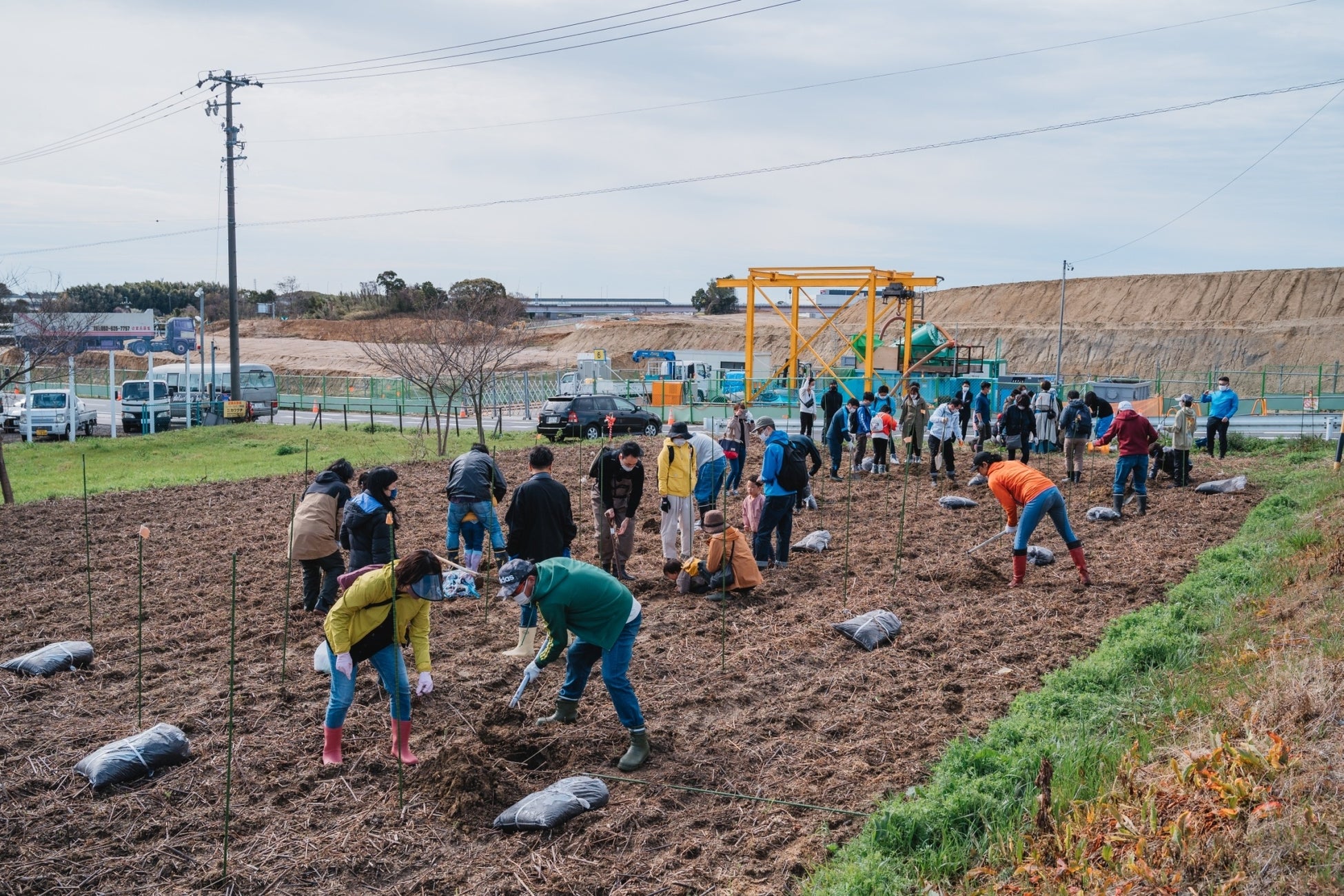 このぶどう畑の定植作業には、2021年のクラウドファンディングで支援してくださった皆さまにもご参加いただきました。