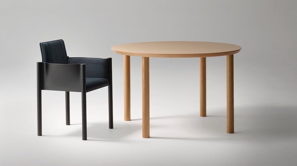 新しく発表されたテーブルのひとつは、ガムフラテージがデザインした飛驒産業製のMiauテーブルです。昨年同シリーズのMiauアームチェアを発表し、デンマークの伝統とデザインを再解釈したものとして高く評価されました。
