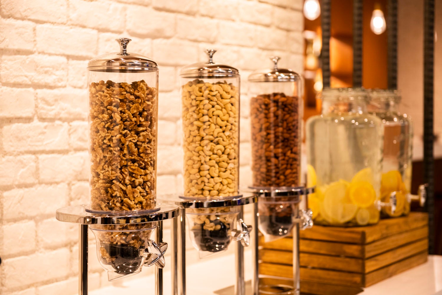 滞在中はデトックスウォーターが飲み放題で、ナッツが食べ放題な他、作りたてスムージー(5種類)、ハイボールのどちらか1杯をサービス。※オリジナルウォーターボトルもプレゼント(数量限定)