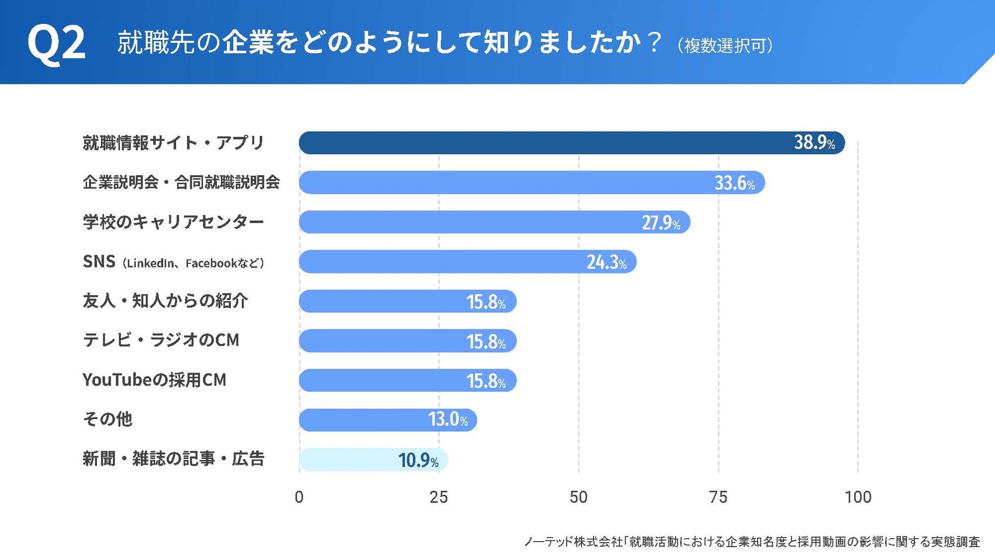 この結果は、YouTubeなどの動画広告が、企業の認知度を高め、候補者の関心を引きつける有効な手段であることを示しています。広告は情報を伝えるだけでなく、興味を引き、さらなる行動へのきっかけを提供する重要な役割を果たします。