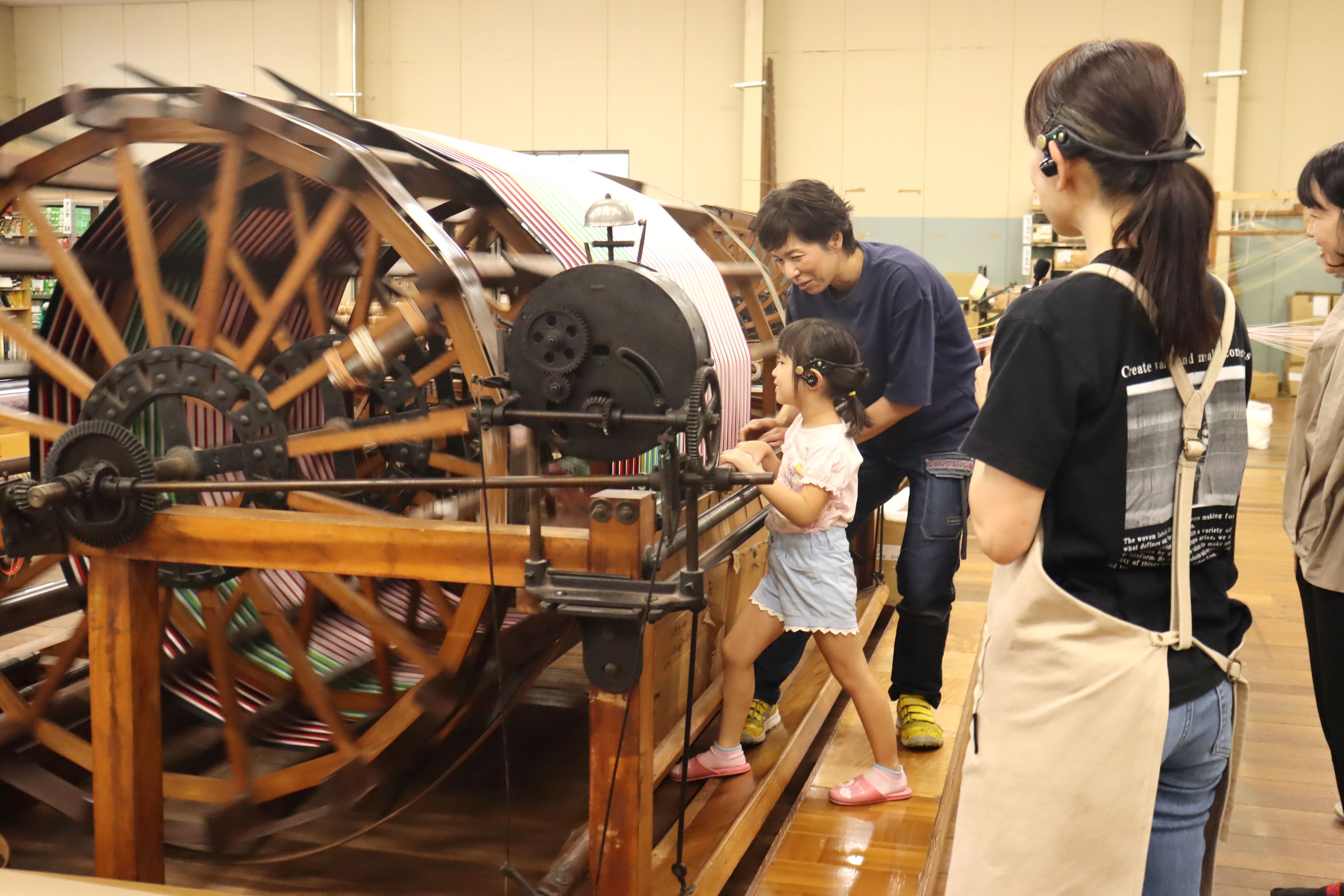 リボンを織る織機を間近でじっくり観察できたり、時には糸を準備する機械の操作を一部体験できたり、工場の空気を肌で感じながらリボンの製織工程が学べる工場見学をご用意しております。