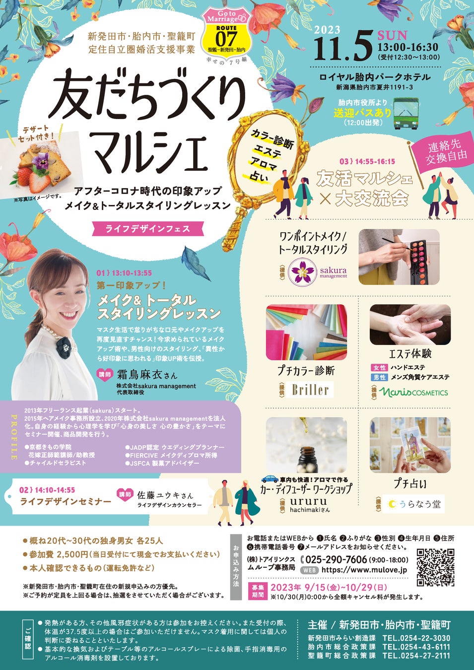2023/11/5(日)新発田市・胎内市・聖籠町定住自立圏婚活支援事業:友だちづくりマルシェ を開催します