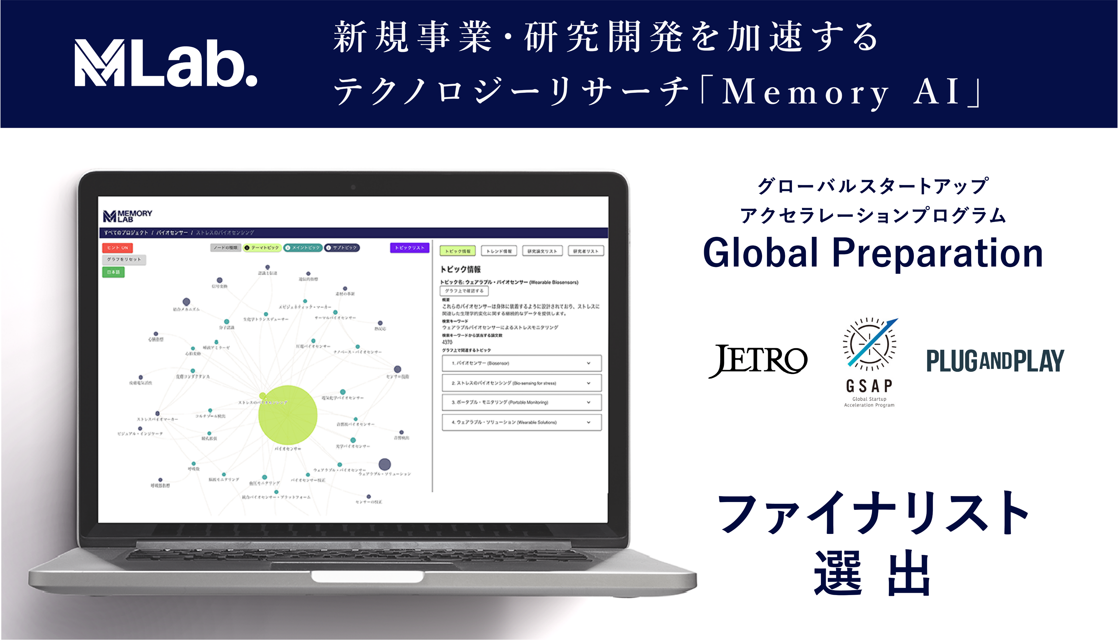 株式会社MEMORY LAB、グローバルスタートアップアクセラレーションプログラム「Global Preparationコース」ファイナリストに選出