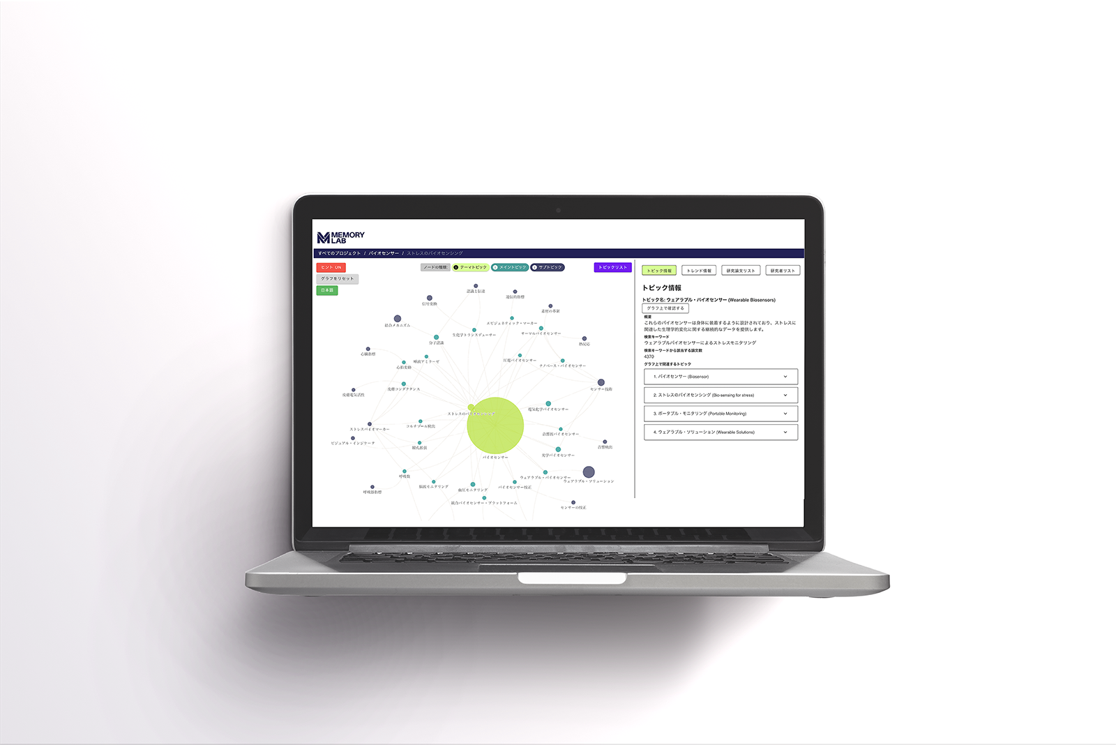 『Memory AI』とは、企業の新規事業や研究開発を加速するテクノロジーリサーチサービスです。技術的革新性によって社会のニーズに応えることが求められる企業において、自社技術の応用可能性や新規事業領域の探索に利用されています。