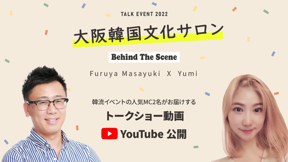 大阪韓国文化院(院長 鄭泰九)は、韓流イベントのMC古家正亨さんとYumiさんのトークショー「~Behind The Scene~」の特別動画を大阪韓国文化院公式Youtubeチャンネルで公開する。