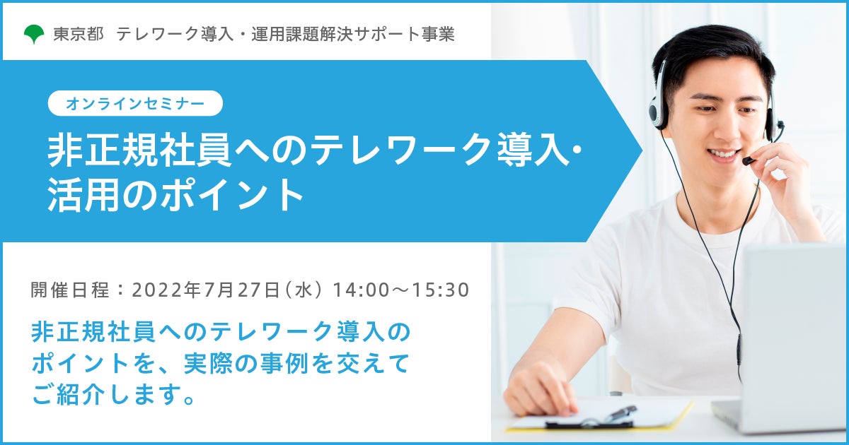 また、本事業の一環として、テレワークの活用促進に役立つオンラインセミナーを開催しますので、多様で柔軟な働き方を推進するヒントに、是非ご活用ください。