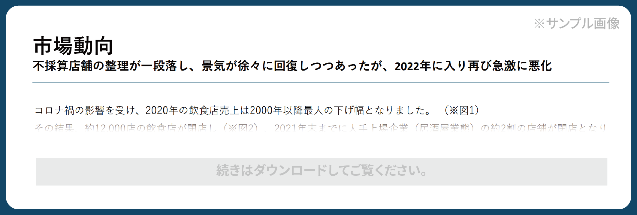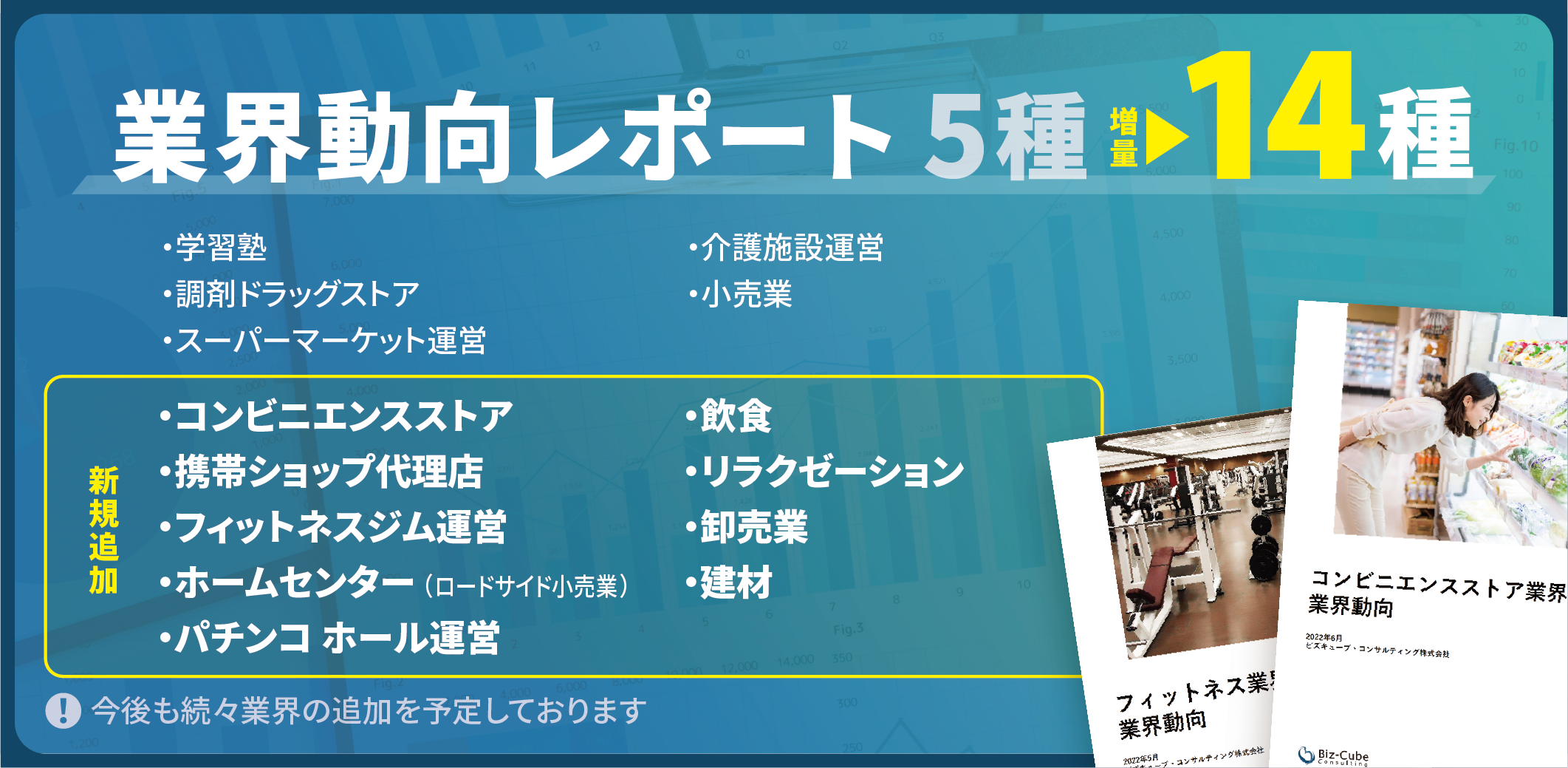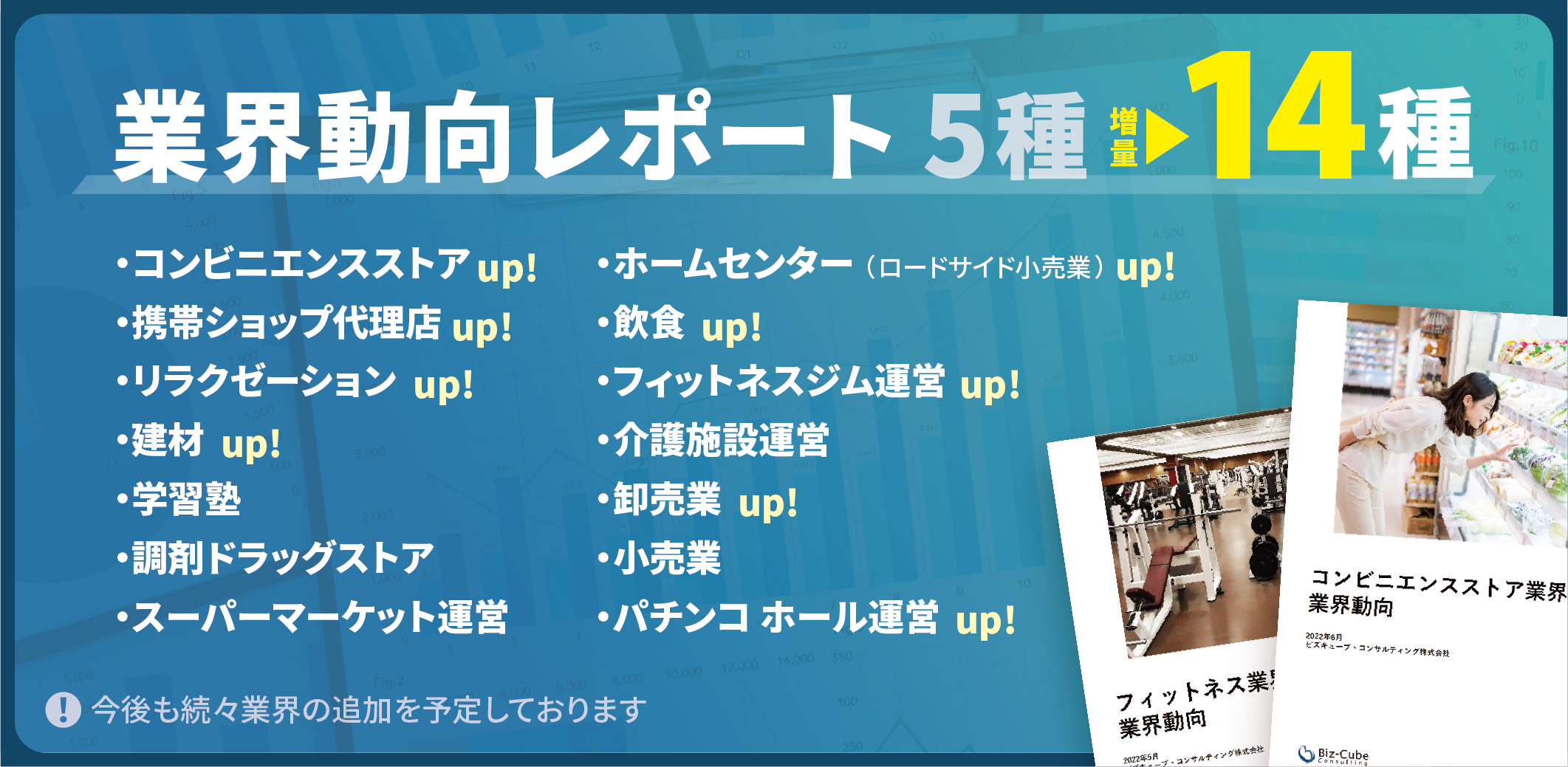 業界動向レポートは、店舗や倉庫などを拠点としてビジネス行っている企業や業界向けに作成しております。