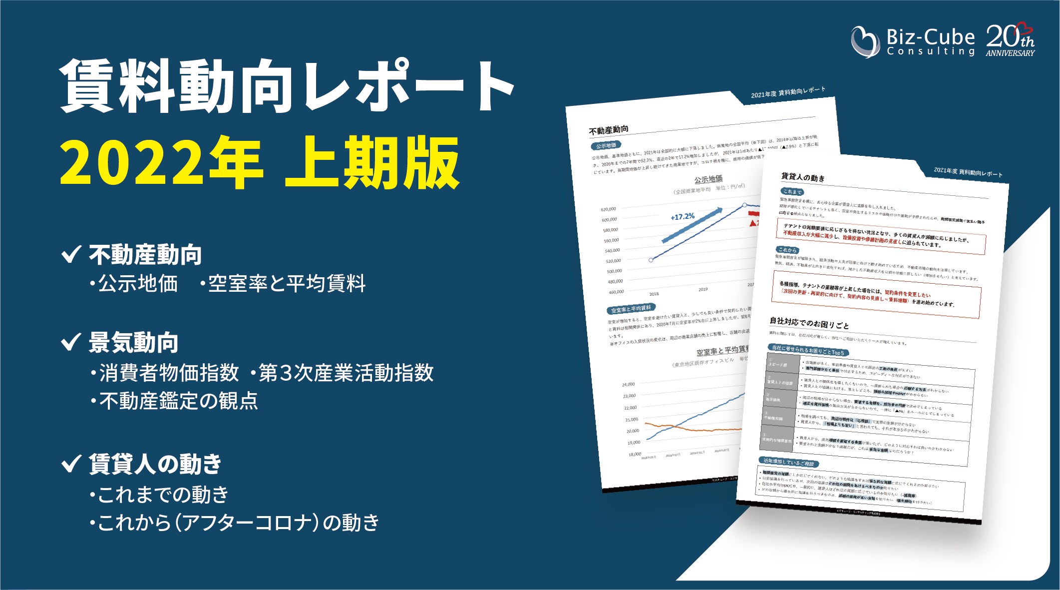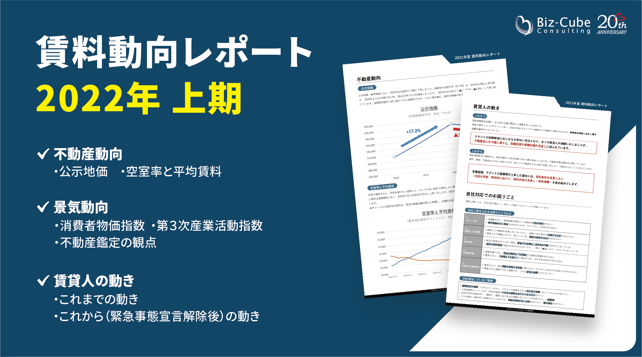 不動産コンサルティングファームのビズキューブ・コンサルティング株式会社(本社:大阪府大阪市/代表取締役社長:笠井大祐)は、「賃料動向レポート(2022年上期版)」をリリースしました。