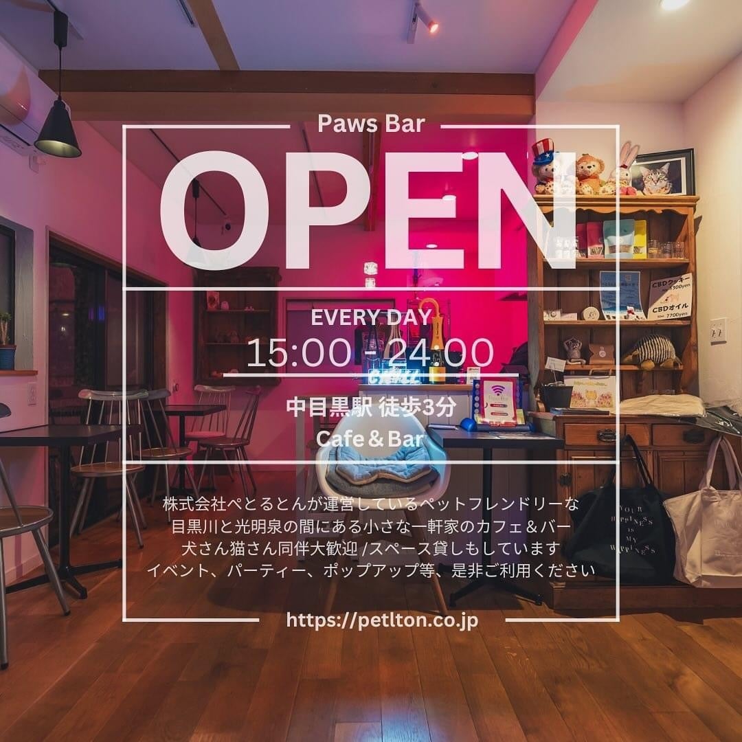 ペットフレンドリーなカフェバー【Paws Bar】 https://www.instagram.com/pawsbar.nakameguro