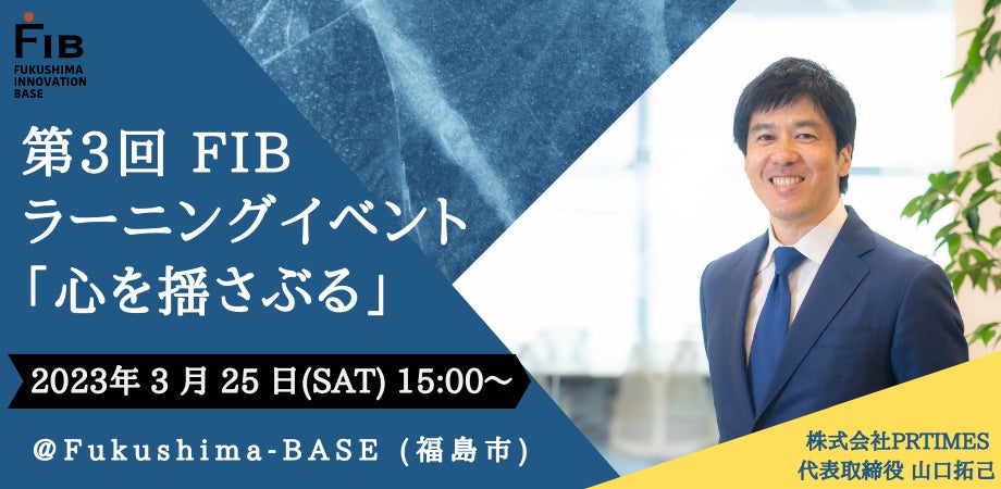 【3/25(土)福島市Fukushima-BASE】 PRTIMES山口社長による第3回FIBラーニングイベント「心を揺さぶる」開催のお知らせ