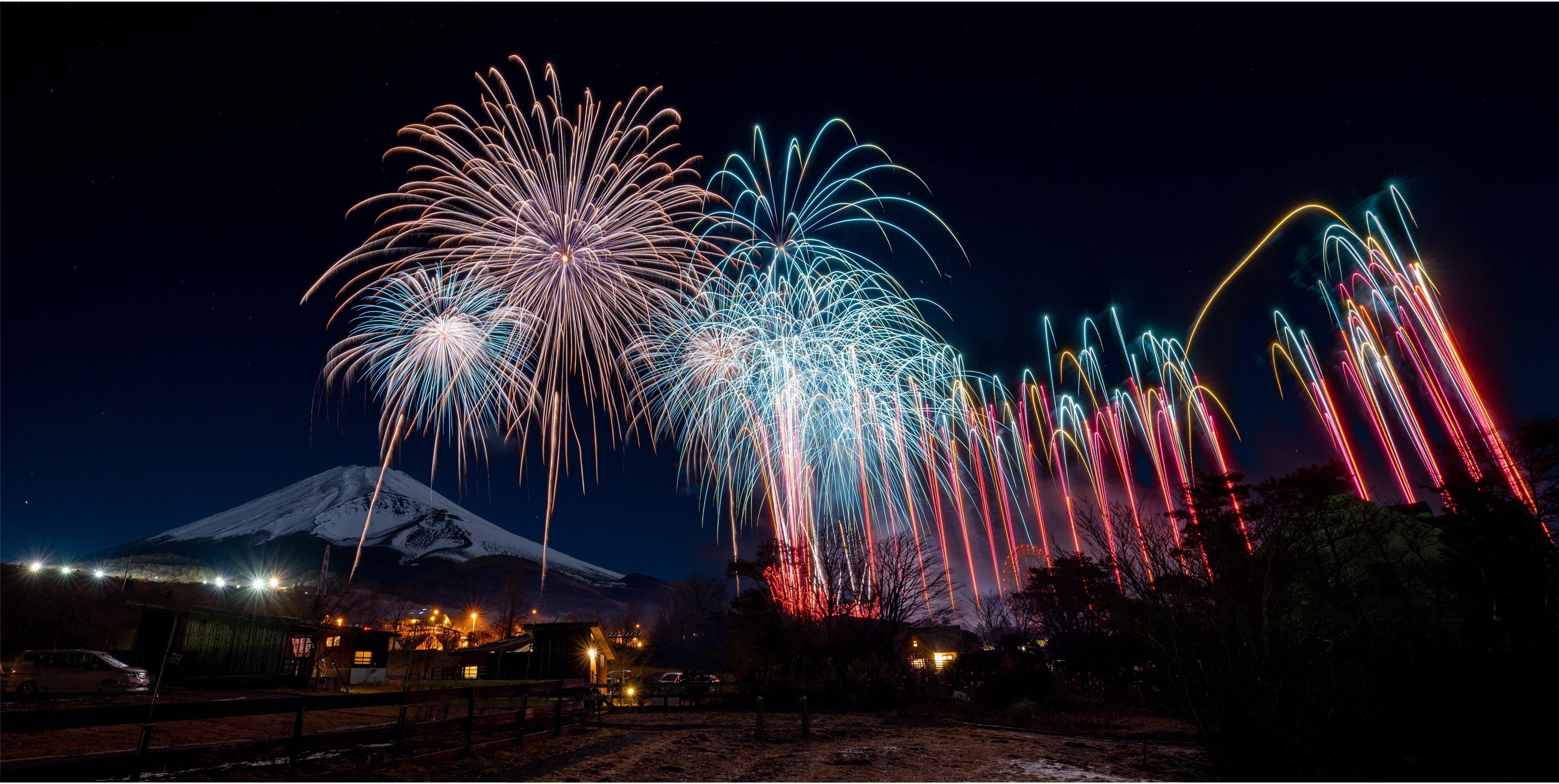 花火の製作は、静岡県が誇る国内屈指の花火企業イケブンに加えて、多数の優勝/受賞歴を持ち名実ともに国内最高峰の花火企業である野村花火工業、驚愕の演出で観客を魅了する片貝煙火工業が担当。雪化粧の富士山を背景に大輪の花火が開く、他に類を見ない大迫力の花火大会となりました。