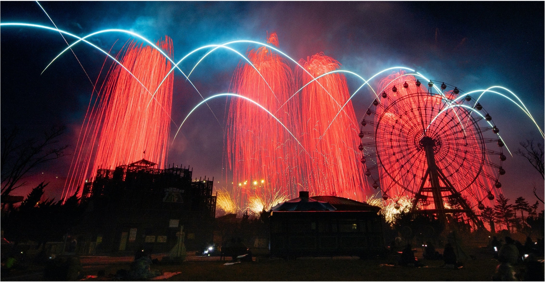 本大会は広大な敷地内にソーシャルディスタンスを十分に確保した限定約4,500席で開催。観覧エリアが遊園地であることを生かした鑑賞チケットや、自家用車から花火を観覧できるドライブイン花火のチケットなど、人との接触を最小限に抑えたプランを用意しました。安心して花火をお楽しみいただける、withコロナ時代の新しい形の花火大会となりました。