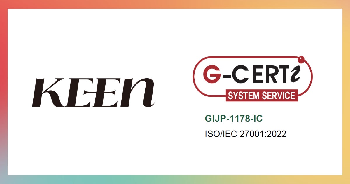KEEN株式会社(本社:東京都渋谷区、代表者:小倉一葉、以下当社)は、情報セキュリティマネジメントシステム(Information Security Management System、ISMS)の国際規格である「ISO/IEC 27001 : 2022」の認証を取得したことをご報告いたします。