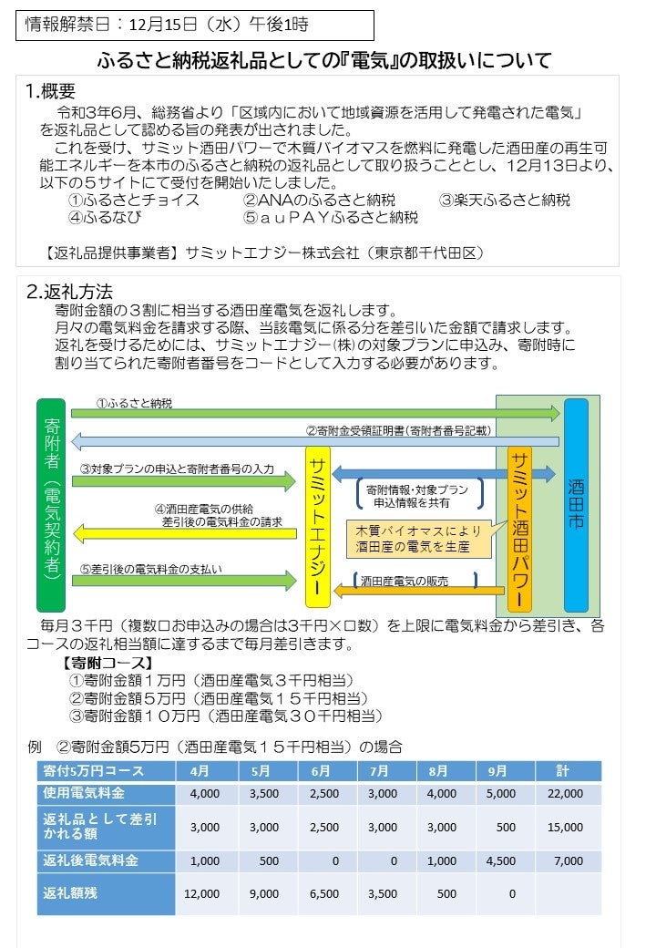 山形県酒田市のふるさと納税返礼品に【酒田産電気(再生可能エネルギー)】が登場!