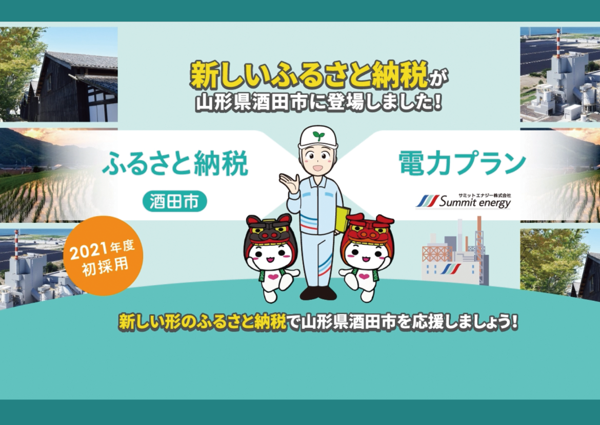 酒田市で発電した『環境にやさしい再生可能エネルギー』をふるさと納税の返礼品としてお届けします。